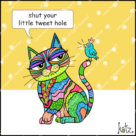 Perched with a blue bird on its tail, this Katz is so over it. With one raised brow and a side-eye to rival the best, it’s the perfect gift for anyone who’s had enough chirping for one day.