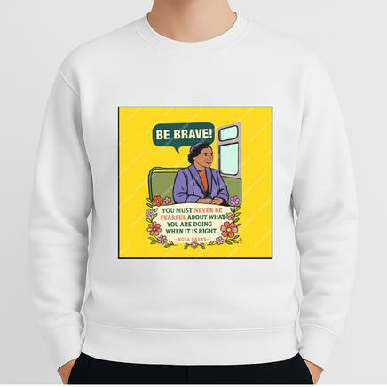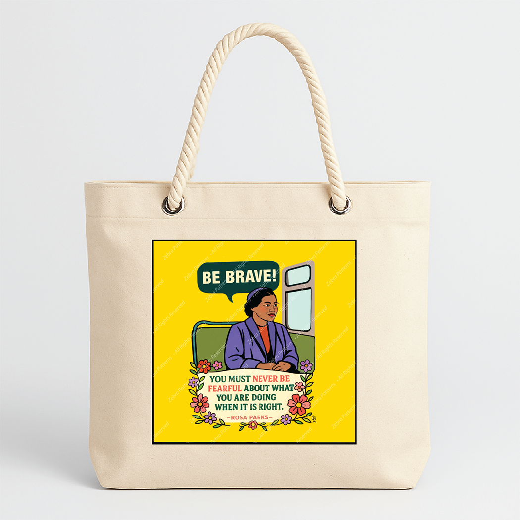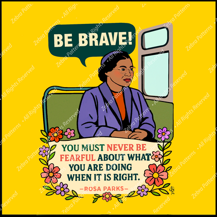 This bold 9” x 9” 100% cotton fabric art panel honors civil rights icon Rosa Parks with her courageous words: “You must never be fearful about what you are doing when it is right.” The message bubble reads “Be Brave!” — a powerful tribute to moral courage and quiet strength. (Part of the Women's Quote Panel series.)