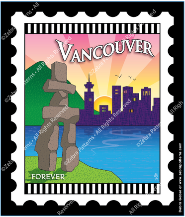 Stamps are one of Zebra Patterns' signature products. Hundreds of destinations and themes -  growing monthly - illustrating life's journeys - Where Ya' Been - for you, family and friends! 100% cotton. 6" x 7" Mini Stamps and 18" x 21" Stamp Panels. View/buy from here, or from the grouped sub-categories menu at left.