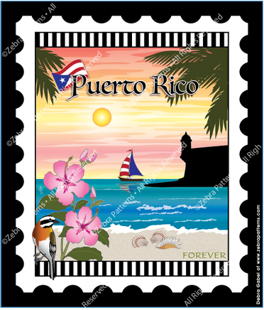 Stamps are one of Zebra Patterns' signature products. Hundreds of destinations and themes -  growing monthly - illustrating life's journeys - Where Ya' Been - for you, family and friends! 100% cotton. 6" x 7" Mini Stamps and 18" x 21" Stamp Panels. View/buy from here, or from the grouped sub-categories menu at left.