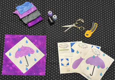 See image for the block put together with cotton fabrics. I chose a light background with matching corners to my design. My background will be the same for all twelve blocks. Your download will include a full size pattern, a positioning sheet and directions to create the background square in square block to place the featured image.