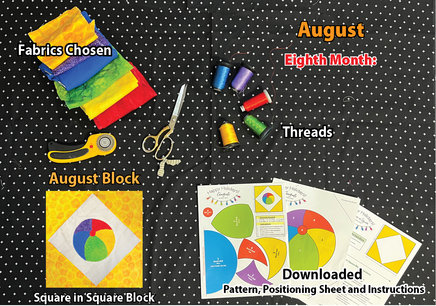 See image for the block put together with cotton fabrics. I chose a light background with matching corners to my design. My background will be the same for all twelve blocks. Your download will include a full size pattern, a positioning sheet and directions to create the background square in square block to place the featured image.