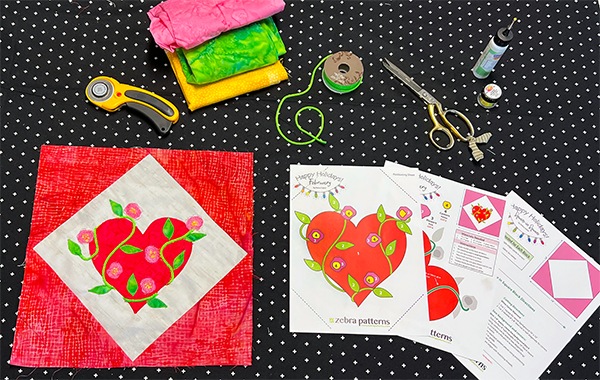 See image for the block put together with cotton fabrics. I chose a light background with matching corners to my design. My background will be the same for all twelve blocks. Your download will include a full size pattern, a positioning sheet and directions to create the background square in square block to place the featured image atop.