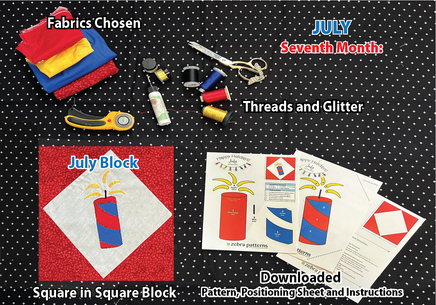 See image for the block put together with cotton fabrics. I chose a light background with matching corners to my design. My background will be the same for all twelve blocks. Your download will include a full size pattern, a positioning sheet and directions to create the background square in square block to place the featured image.