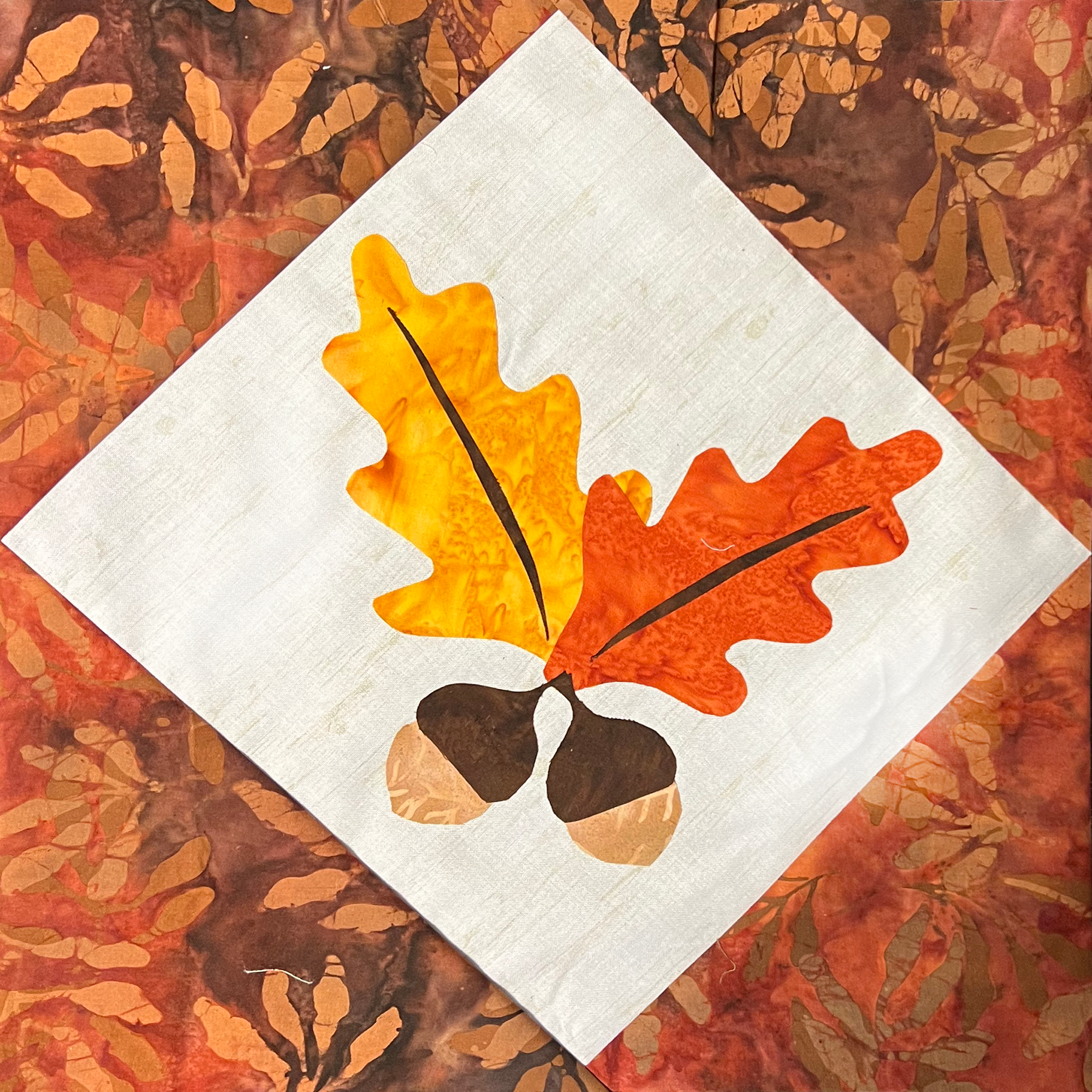 See image for the block put together with cotton fabrics. I chose a light background with matching corners to my design. My background will be the same for all twelve blocks. Includes a full size pattern, a positioning sheet and directions to create the background square in square block to place the featured image.
