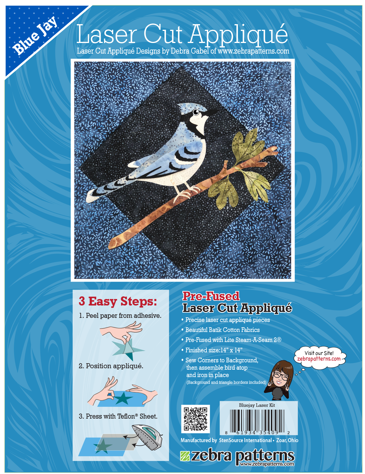 Also available in Applique Patterns without pre-fused laser cut kit.