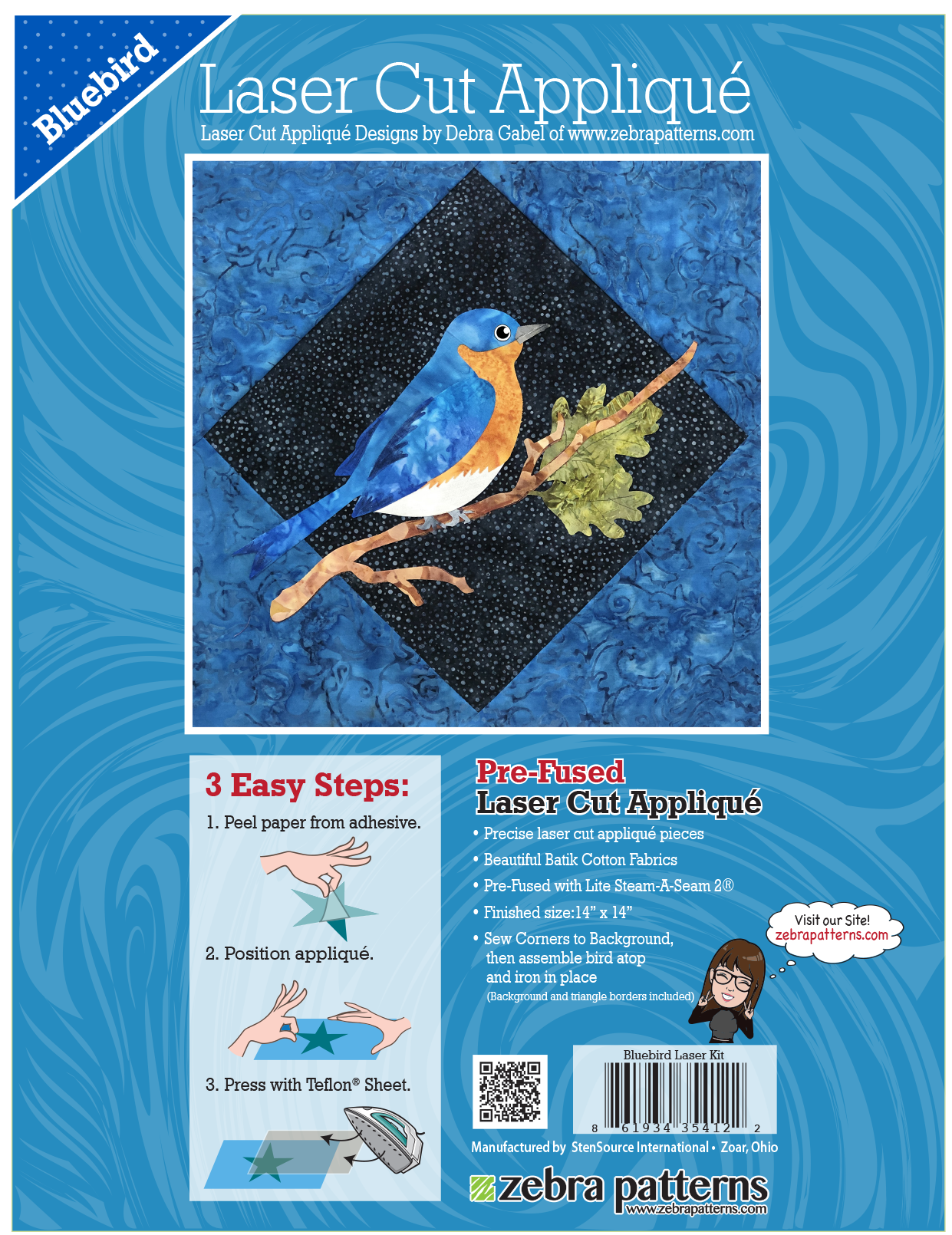 Also available in Applique Patterns without pre-fused laser cut kit.
