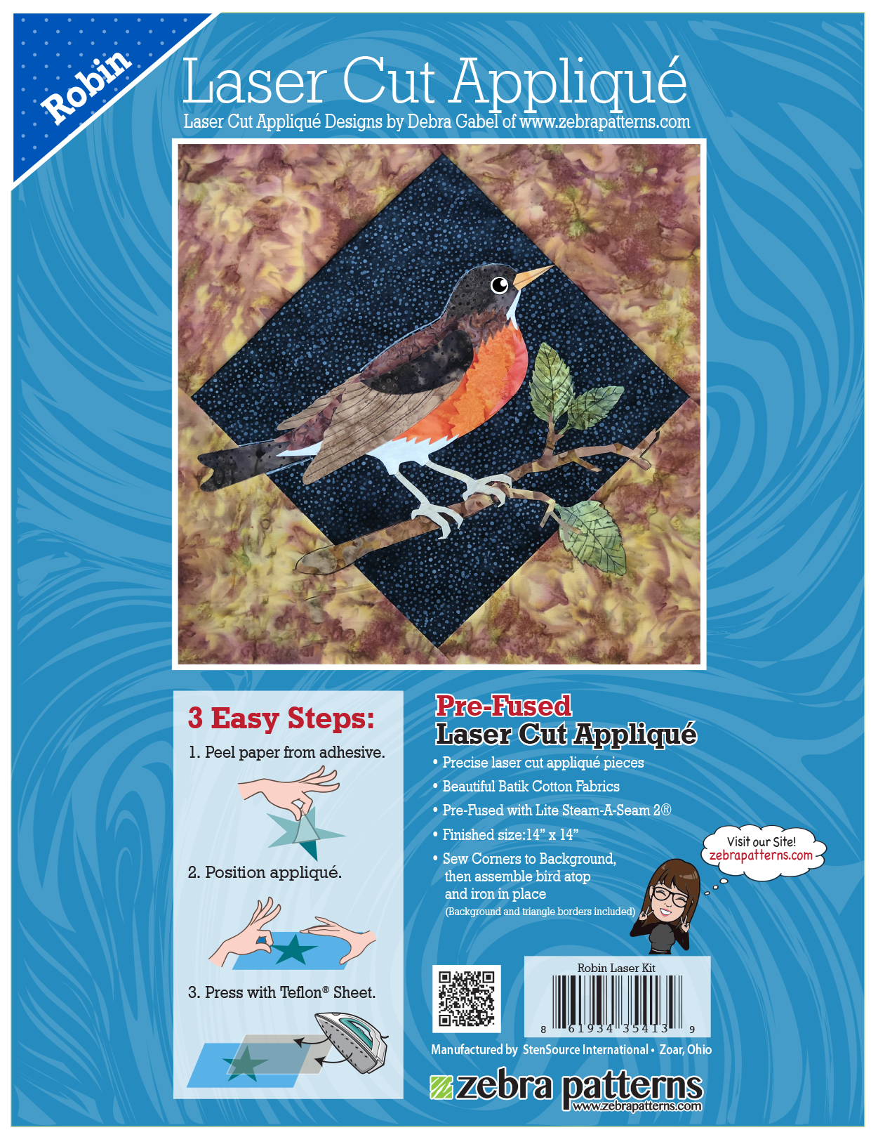 Also available in Applique Patterns without pre-fused laser cut kit.