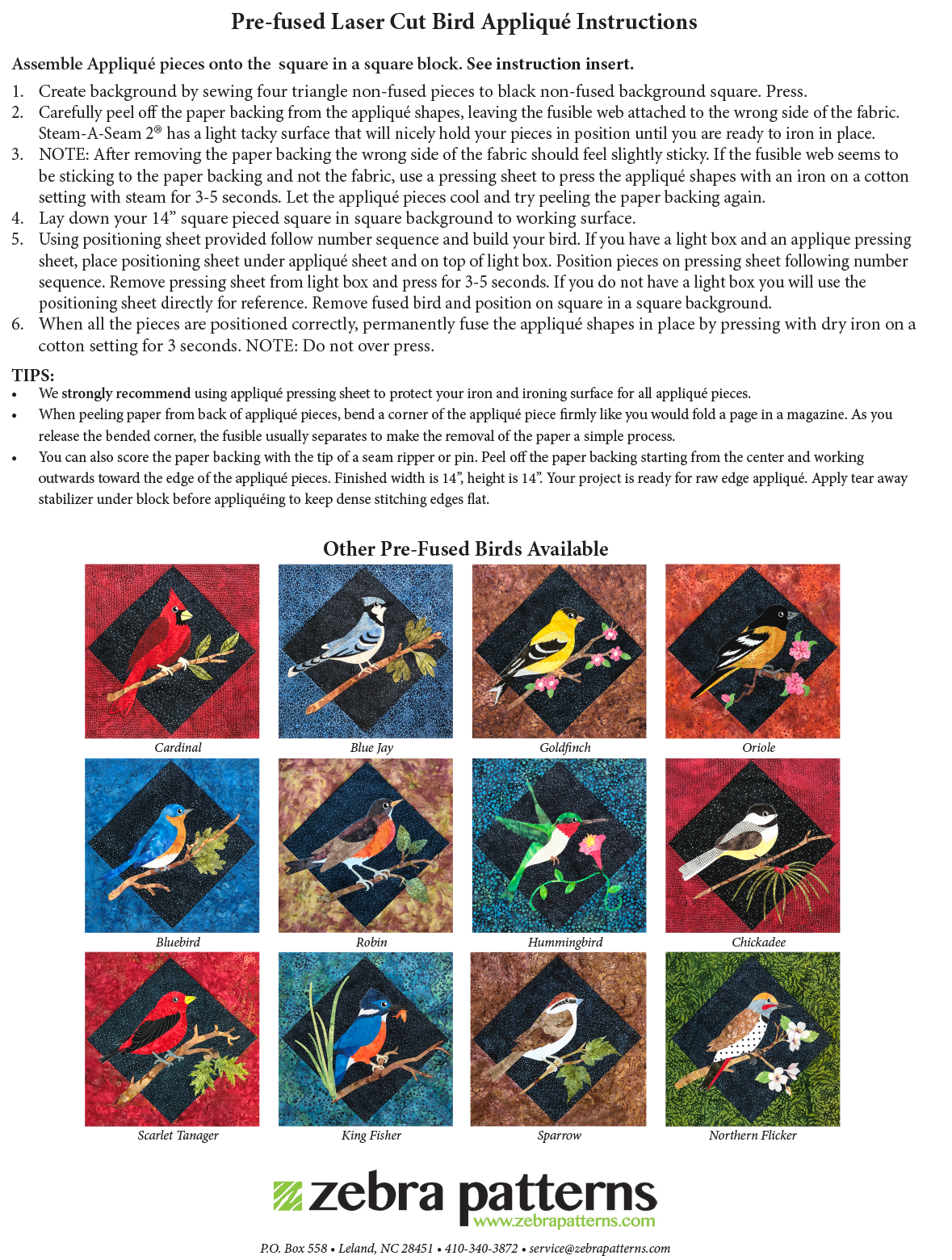 Also available in Applique Patterns without pre-fused laser cut kit.