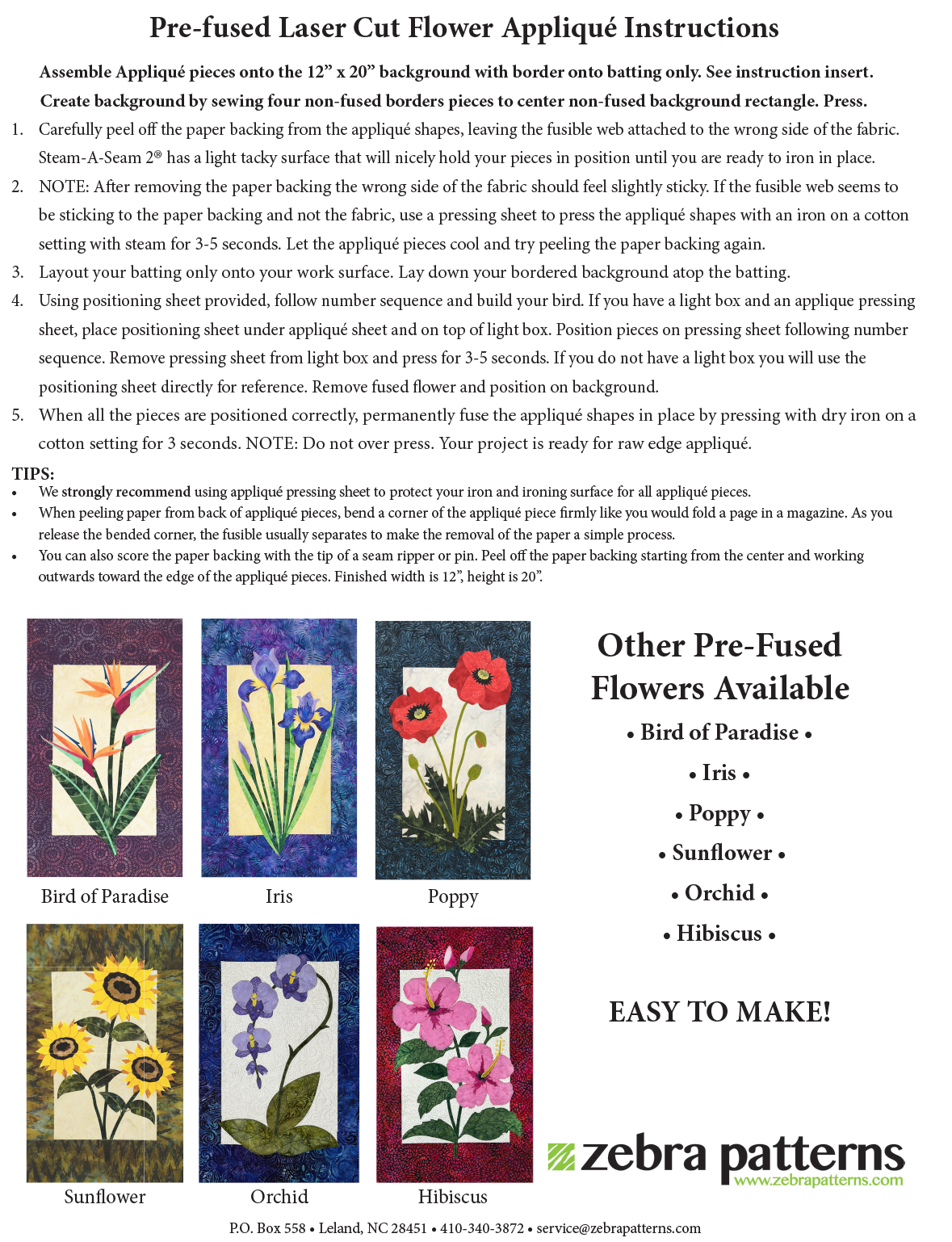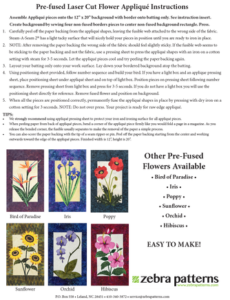 Also available in Applique Patterns without pre-fused laser cut kit.