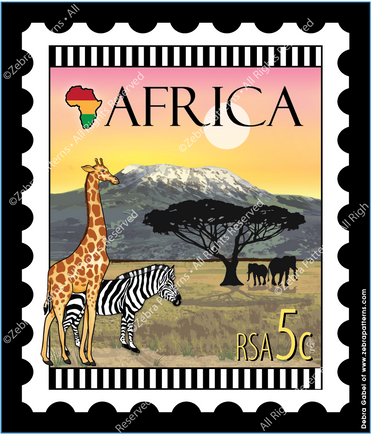 Stamps are one of Zebra Patterns' signature products. Hundreds of destinations and themes -  growing monthly - illustrating life's journeys - Where Ya' Been - for you, family and friends! 100% cotton. 6" x 7" Mini Stamps and 18" x 21" Stamp Panels. View/buy from here, or from the grouped sub-categories menu at left.