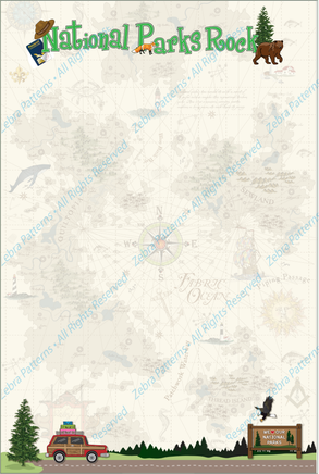 36" x 56" printed whole cloth 100% cotton background featuring: