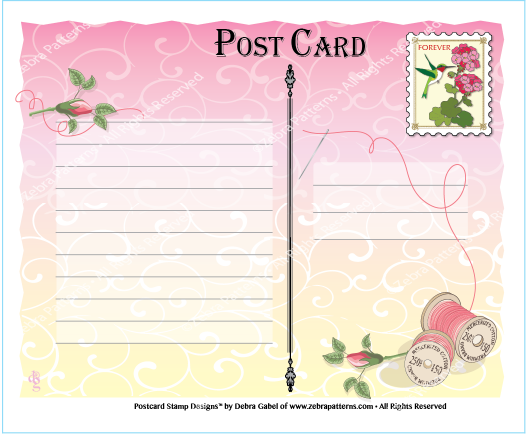 Postcards can be sent US mail by applying real stamp over the printed faux stamp. Get fabric card hand canceled at post office and return to clear envelope and seal for mailing. Alternatively you may want to place embellished postcard/clear envelope inside an opaque/paper mailing envelope for increased protection. Either way, mailing cost is higher than standard first class letter mail.